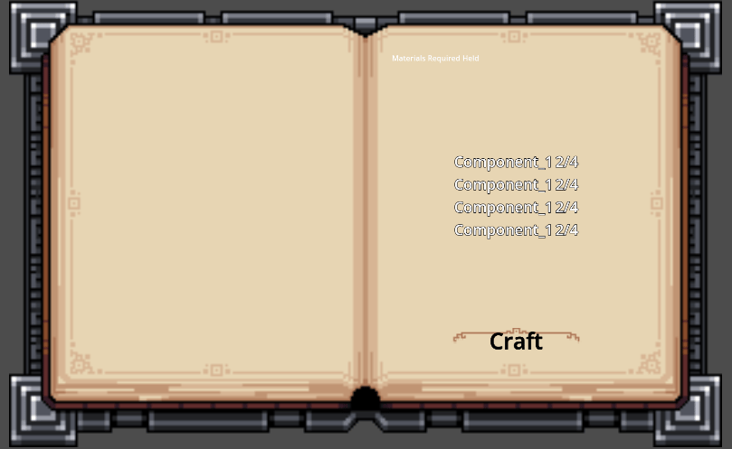 The first challenge was getting the Control nodes to size and play nicely with the components. Where I landed was using nested control points with anchors to constrain each of the dimensions until I outlined each page of the book. Then I could set the components to “Full” and expect that they would scale correctly. The next step to work on is creating the sub components and layout. Finally, I can load data from my game database and populate the info based on selected components. The map is clear in my mind, but I still feel sluggish when I sit down to implement it. It usually takes me a few tries to get the right look and feel. The first UI is always the hardest because I have the extra work of setting up the game theme and styling the components. Once all that is in place, the development of future UI components will become much quicker.